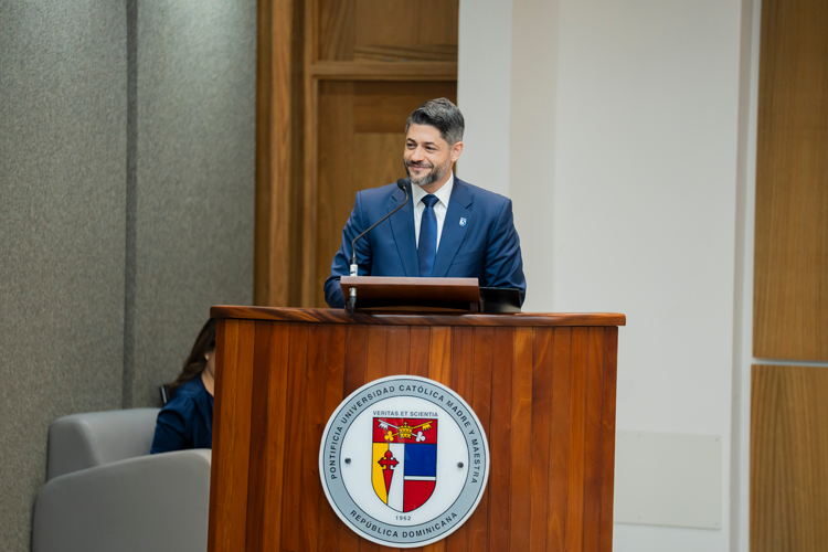 Santiago, R.D.- La Fundación Madre y Maestra de la Pontificia Universidad Católica Madre y Maestra (PUCMM) celebró este jueves la conferencia “Más allá de la empresa: liderazgo con propósito y compromiso país”, impartida por el vicepresidente ejecutivo del Consejo Nacional de la Empresa Privada (CONEP), César Dargam. En este espacio de reflexión y diálogo, Dargam reflexionó sobre el papel del liderazgo empresarial en el desarrollo sostenible de la República Dominicana.